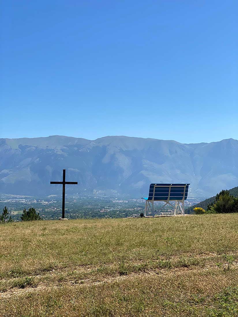 Descrizione: si parte dal centro paese e il percorso si sviluppa in ombra fino all’arrivo. Il tempo di percorrenza non calcola la sosta alla panchina gigante. Escursione adatta a tutti.